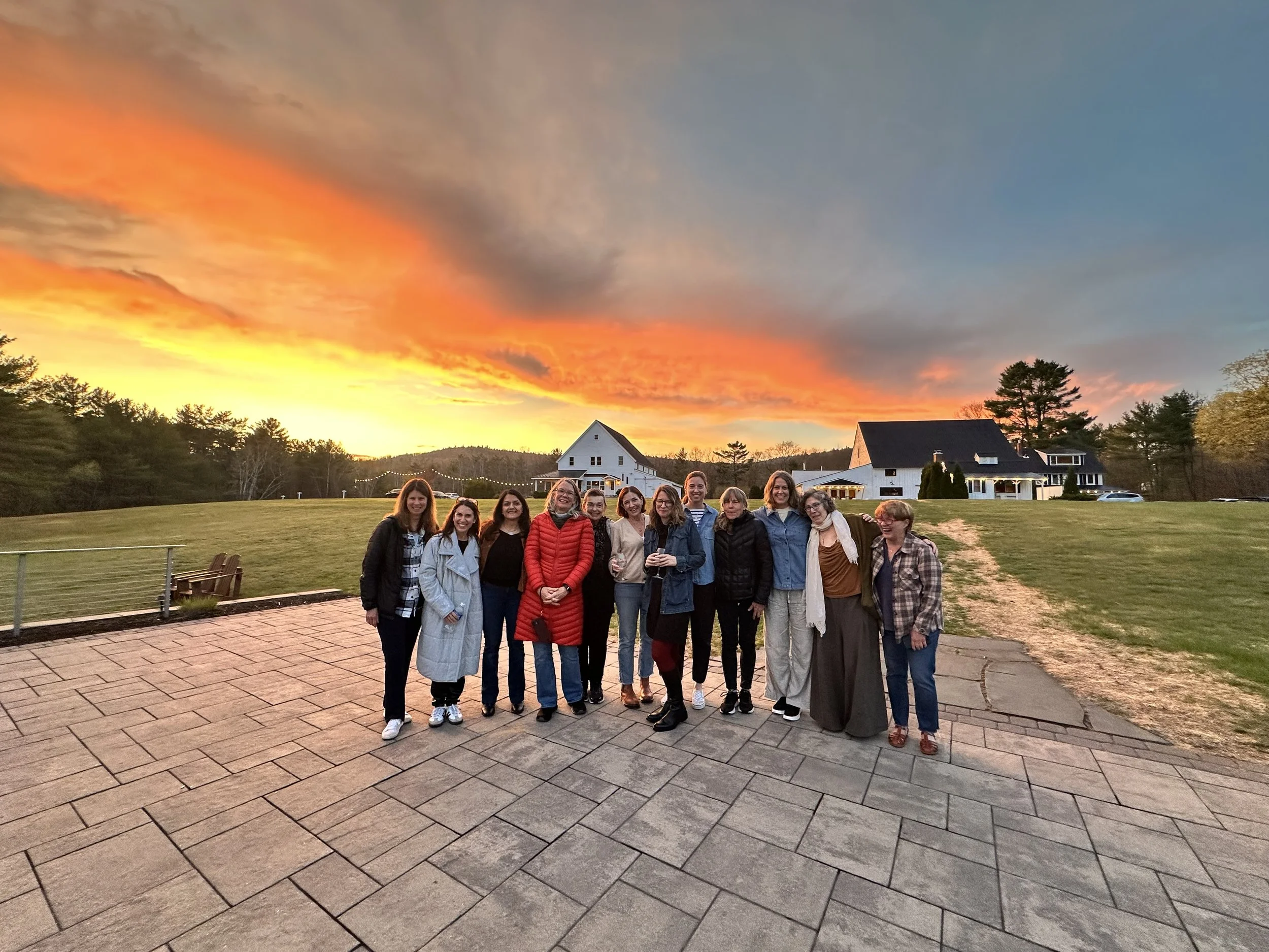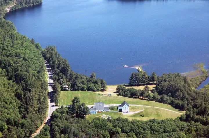 Fieldstone Fireplace + Expansive Stone Patio Overlooking Bear Pond